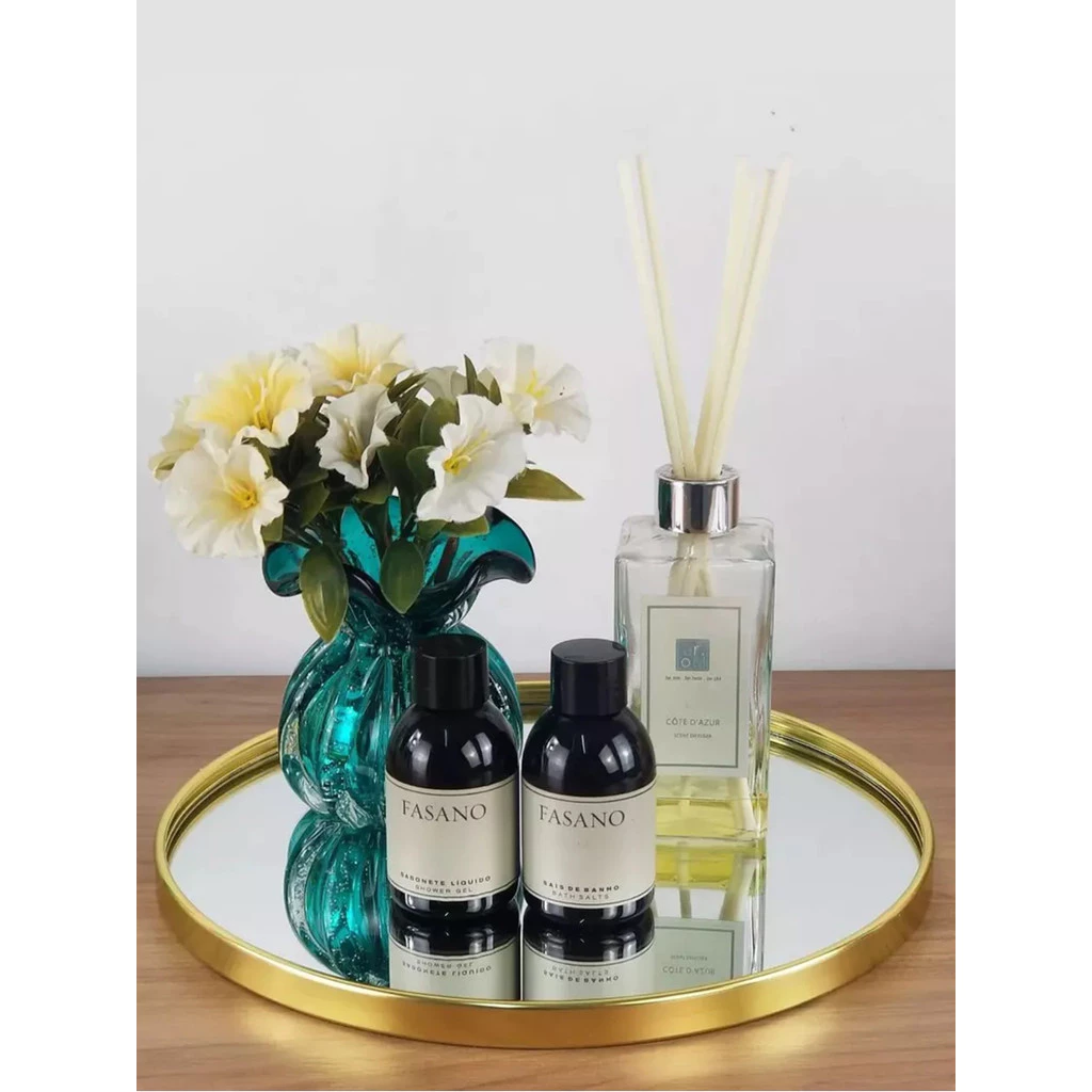 Bandeja espelhada redonda dourada